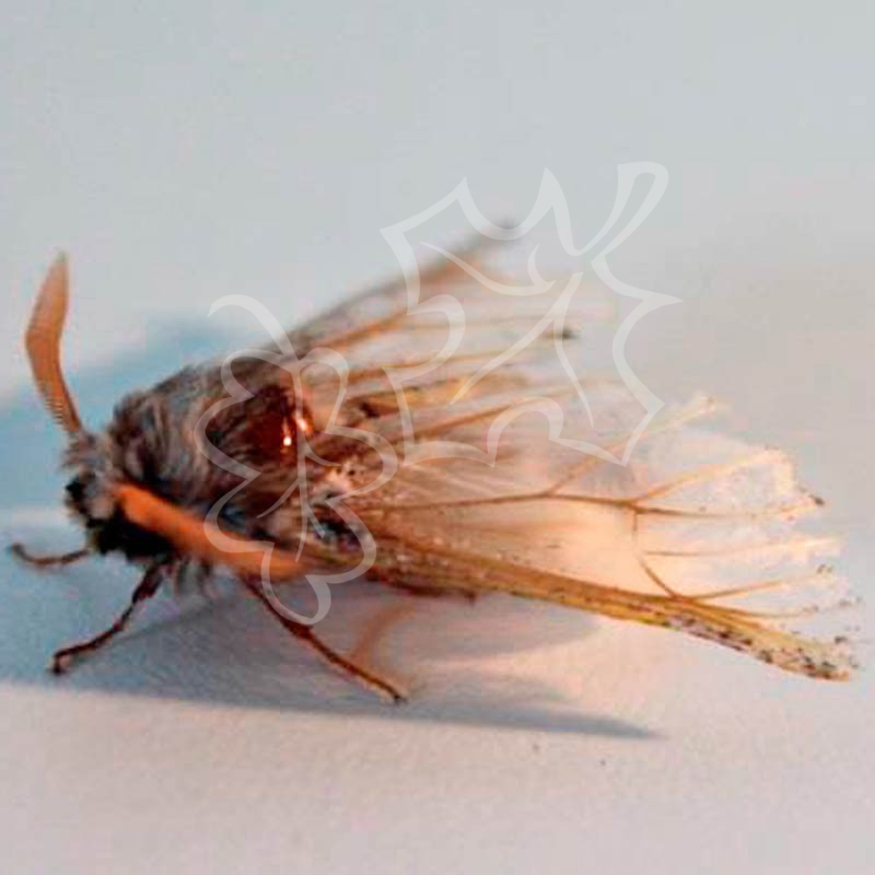 Puesta de huevos después de haber salido las larvas. Las escamas han sido levantadas para poder salir del huevo.