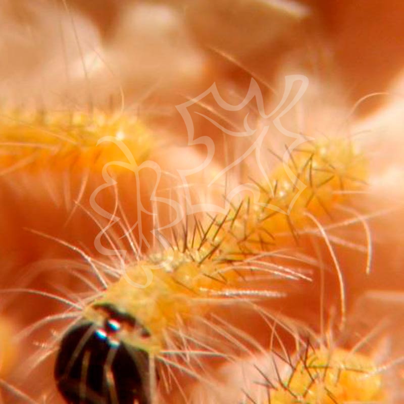 Este sería el segundo estado larvarios del insecto. Todavía no ha desarrollado los pelos urticantes.